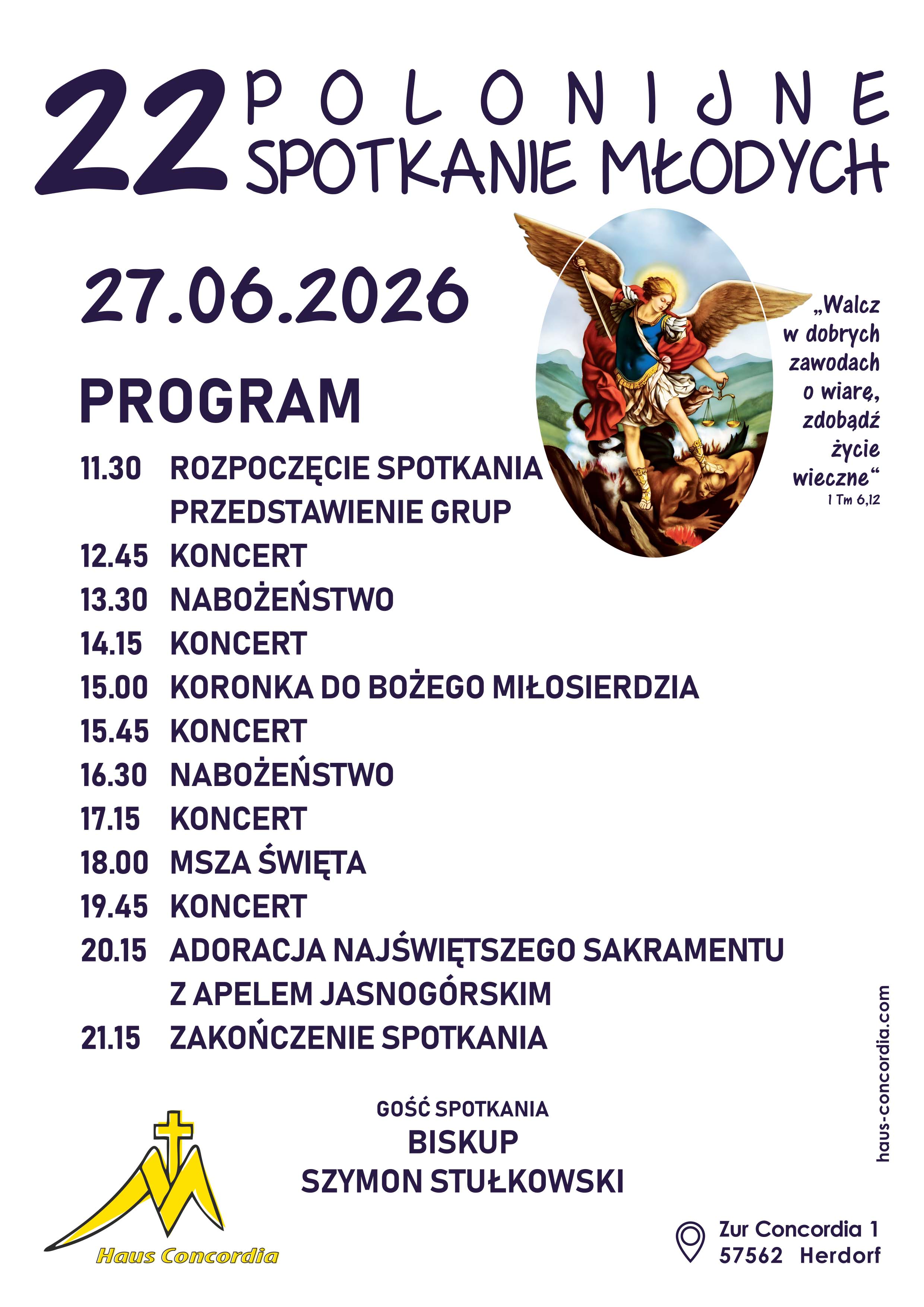 Każdego roku w czwartą sobotę czerwca dolina Concordii zapełnia się kolorowym tłumem młodych Polaków mieszkających nie tylko w różnych zakątkach Niemiec, ale także i w Belgii, oraz w Polsce. Wśród obecnych widać również całe rodziny i wielu dorosłych, którzy mimo osiągnięcia wieku dojrzałego zachowują niegasnącą młodość ducha. Wszyscy oni przybywają, aby doświadczyć wyjątkowego spotkania z Panem Bogiem i między sobą, umocnić osobistą wiarę i doświadczyć jej wspólnotowego wymiaru.